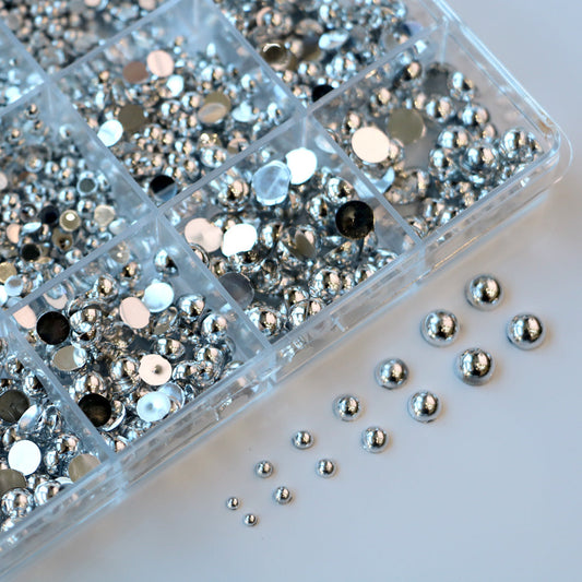 Cre8tion Nail Art Accessory Assorted Black Pearl & Silver Beads 06