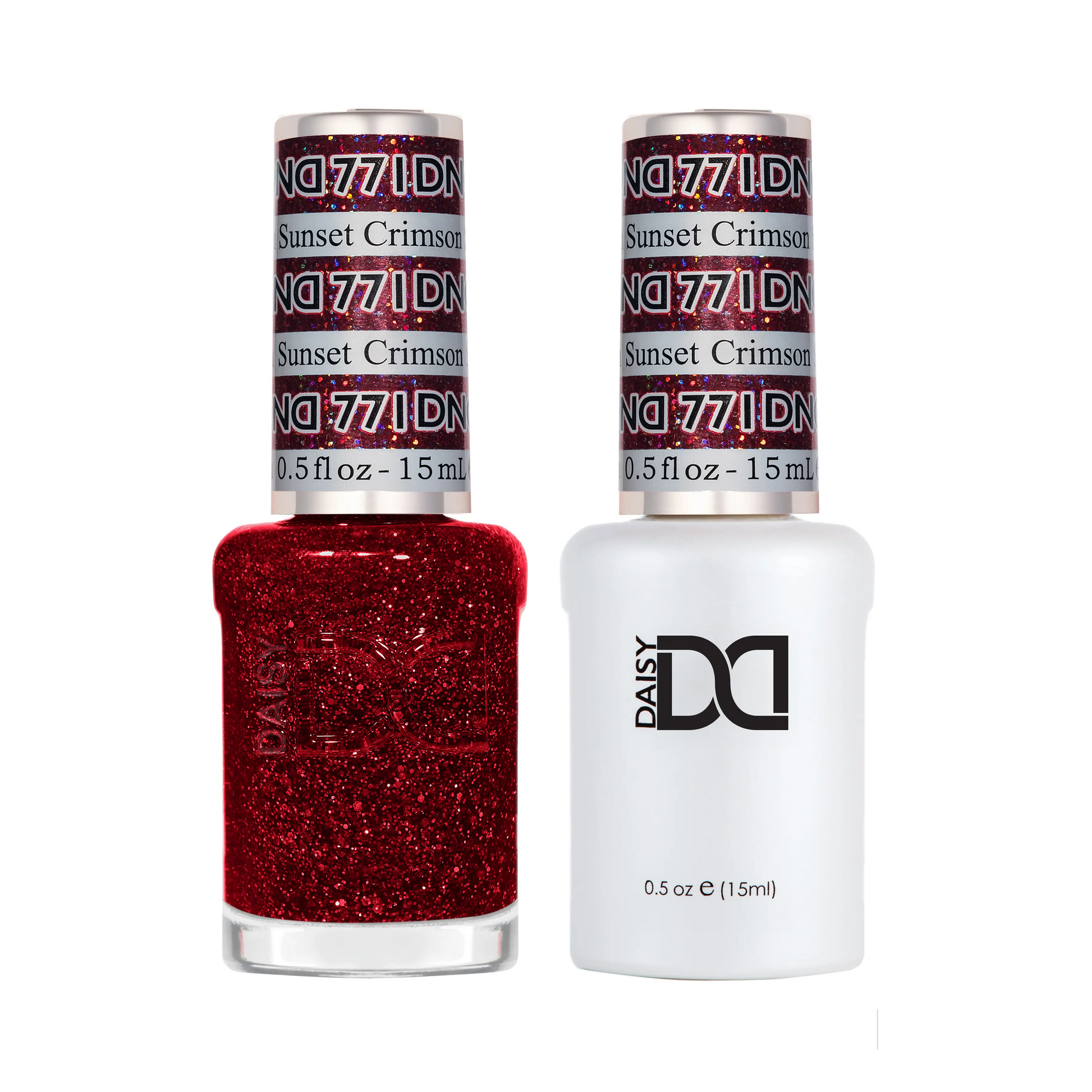 Crimson Sunset #771 – A fiery warm-toned red with gold sunset glitter