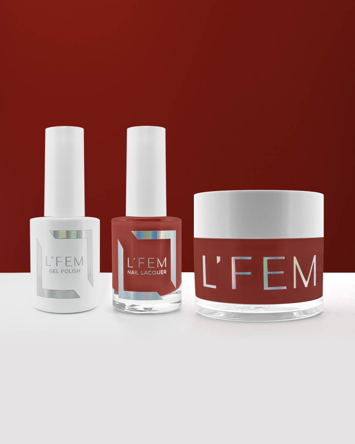 L'FEM GEL POLLISH: L’FEM gel polish is designed for an exact color match to L’FEM lacquer, and a nearly perfect match to L’FEM powder.